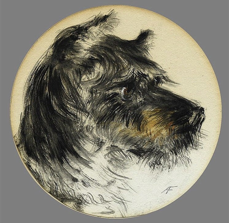Alexander Forbes, animal painter. “His rendering of dogs was particularly happy in combining a good deal of true pictorial motive with the interest in points which pleases the doggy man.” Here is one of his dogs. (1839)